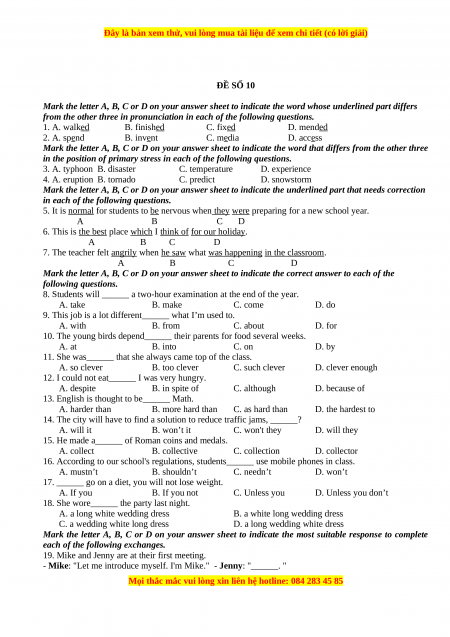 ĐỀ SỐ 10