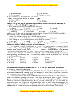 not an impossible thing after all. Now I can speak three: Spanish, Italian, and German. And I am (28) ______ Korean this year. 25. A. who B. which C. whom D. what 26. A. therefore B. however C. though D. but 27. A. practice B. express C. talk D. communicate 28. A. doing B. making C. taking D. speaking