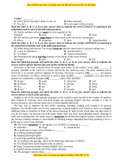 21. Family members who live apart try to be together at Tet. A.beside B. away C. near D. close