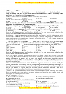 Read the following passage and mark the letter A, B, C, or D on your answer sheet to indicate the