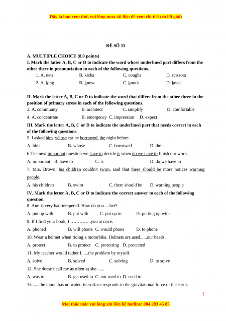 ĐỀ SỐ 15