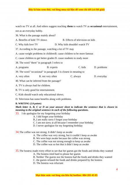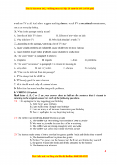 D. Television has some benefits along with problems. B. WRITING (2.0 points)