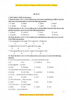 Đề thi trắc nghiệm Tiếng anh 10 năm 2022 - 2023 (Đề 19)