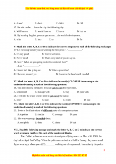 IV. Mark the letter A, B, C or D to indicate the correct answer to each of the following question.