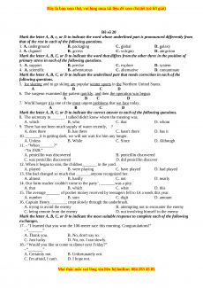 Read the following passage and mark the letter A, B, C, or D to indicate the correct answer to each of the questions.