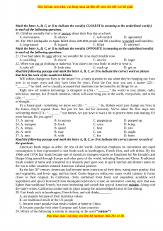 Read the following passage and mark the letter A, B, C, or D to indicate the correct word or phrase