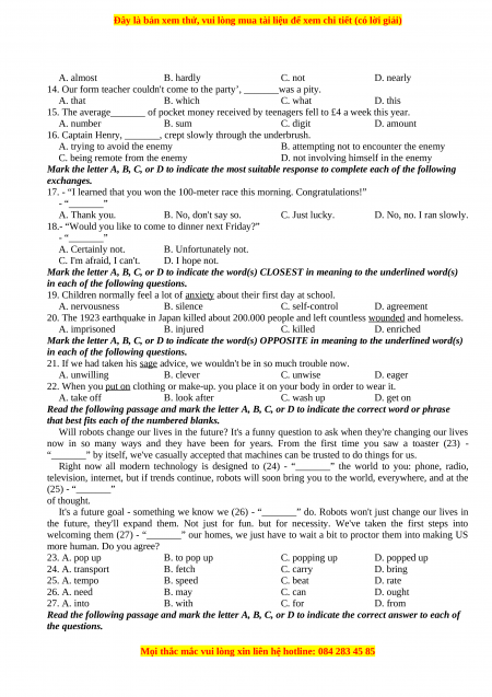 Đề thi được cập nhật liên tục trong gói này từ nay đến hết tháng 6/2023. Chúng tôi đảm bảo đủ số lượng đề đã cam kết hoặc có thể nhiều hơn, tất cả có BẢN WORD, LỜI GIẢI CHI TIẾT và tải về dễ dàng.