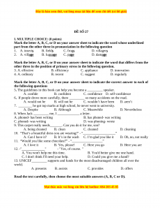 Đề thi trắc nghiệm Tiếng anh 10 năm 2022 - 2023 (Đề 27)