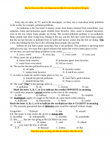 16. The sea has become polluted because of _________ A. oil spills B. factories wastes C. smoke from factories D. A and B are correct