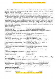 A.the Vietnamese often carry a huge load of a B.a large number of young people own variety of goods motorbikes