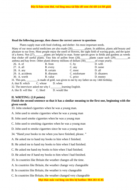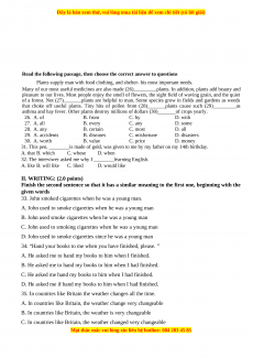 32. The interviwer asked me why I ________learning English. A. like B. will like C. liked D. would like II. WRITING: (2.0 points)