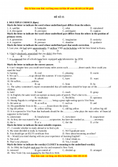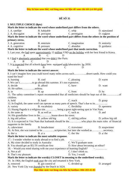 ĐỀ SỐ 35 I. MULTIPLE CHOICE (8pts)