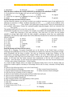 In the US, this (24)…………...your “grades” and “grade point average”(GPA), which are measurements of