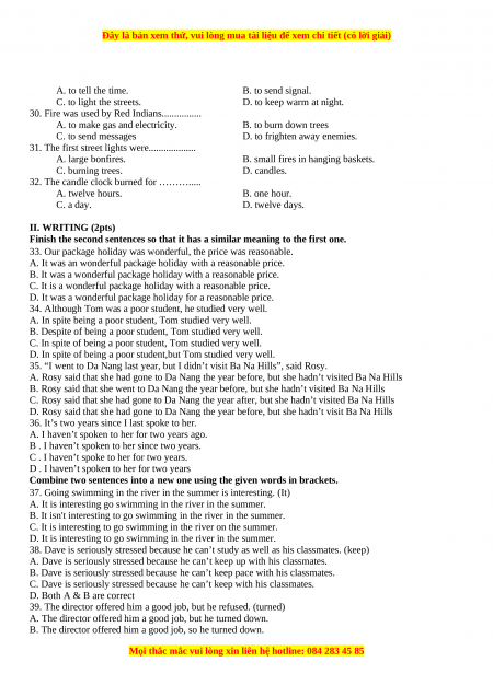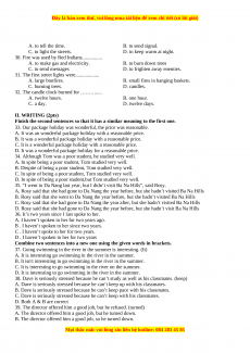 32. The candle clock burned for ………..... A. twelve hours. B. one hour. C. a day. D. twelve days. II. WRITING (2pts)