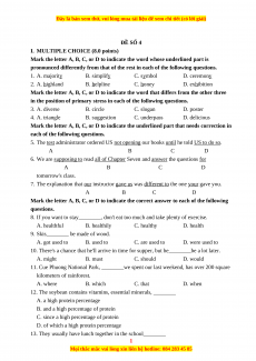 Đề thi trắc nghiệm Tiếng anh 10 năm 2022 - 2023 (Đề 4)
