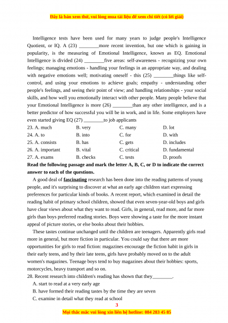 even started giving EQ (27) ________to job applicants 23. A. much B. very C. many D. lot 24. A. to B. into C. for D. with 25. A. consists B. has C. gets D. includes 26. A. important B. vital C. critical D. fundamental 27. A. exams B. checks C. tests D. proofs