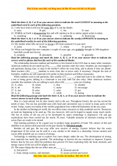 Mark the letter A, B, C or D on your answer sheet to indicate the most suitable response to complete