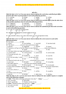Mark the letter A, B, C or D on your answer sheet to indicate the most suitable response to complete