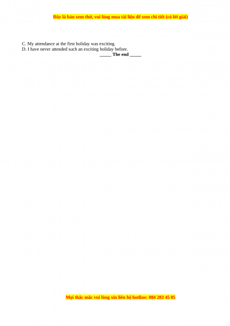 D. I have never attended such an exciting holiday before. _____ The end _____