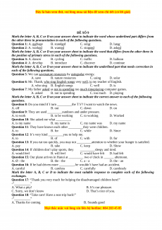 Đề thi trắc nghiệm Tiếng anh 10 năm 2022 - 2023 (Đề 9)