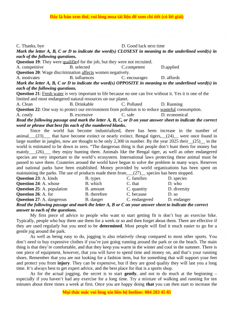maintaining the parks. The use of products made them from___(27)__ species has been stopped. Question 23: A. kinds B. types C. families D. species Question 24: A. whose B. which C. that D. who