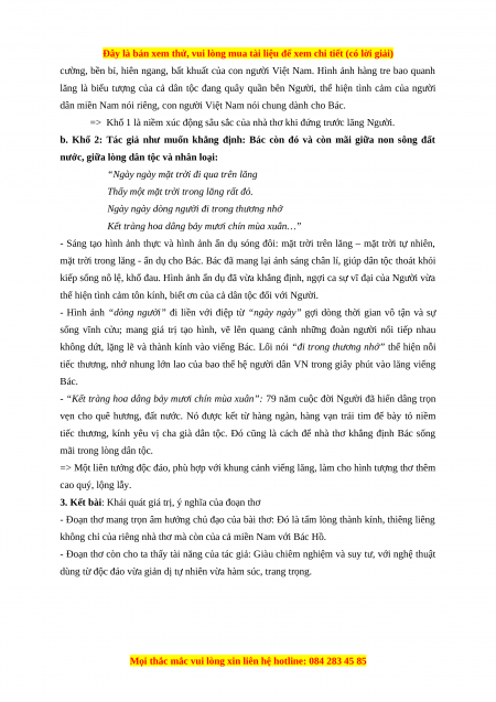 (Trích Viếng lăng Bác – Viễn Phương, Ngữ văn 9, Tập 2, NXBGD, 2005, trang 58)