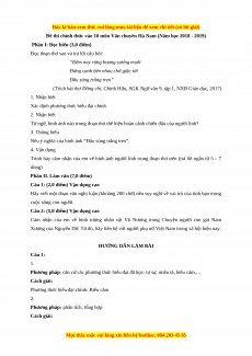 Đề thi tuyển sinh chính thức vào 10 môn Ngữ Văn năm 2018 - 2019 có đáp án - THPT chuyên Hà Nam