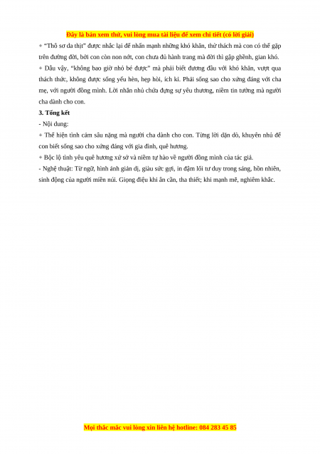 + Thể hiện tình cảm sâu nặng mà người cha dành cho con. Từng lời dặn dò, khuyên nhủ để