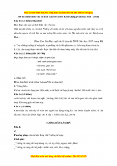 Đề thi tuyển sinh chính thức vào 10 môn Ngữ Văn năm 2018 - 2019 có đáp án - Sở GDĐT Kiên Giang