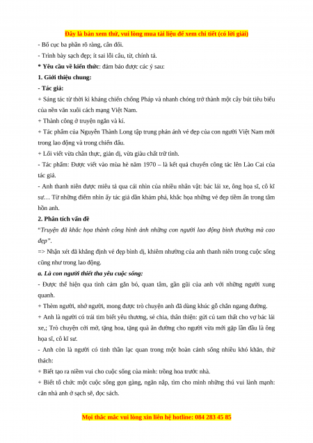 các nhân vật khác. Từ đó làm cho hình tượng của anh thanh niên trở nên khách quan, chân thực. 3. Tổng kết