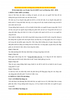 Đề thi tuyển sinh chính thức vào 10 môn Ngữ Văn năm 2018 - 2019 có đáp án - Sở GDĐT Lào Cai