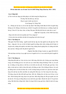 Đề thi chính thức vào 10 môn Văn Sở GDĐT Đồng Tháp (Năm học 2018 - 2019) Câu 1:Nhận biết