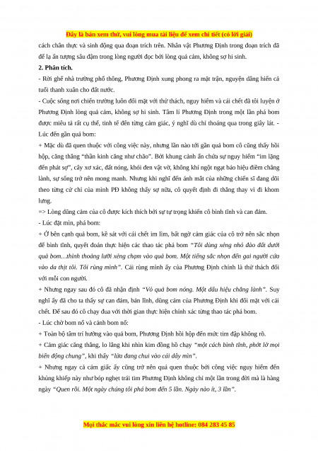 để lạ ấn tượng sâu đậm trong lòng người đọc bởi lòng quả cảm, không sợ hi sinh. 2. Phân tích.