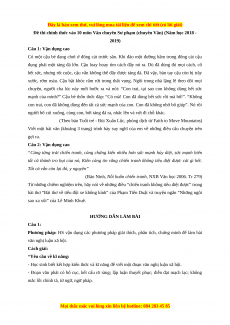 Đề thi tuyển sinh chính thức vào 10 môn Ngữ Văn năm 2018 - 2019 có đáp án - ( Chuyên văn ) THPT chuyên Sư phạm