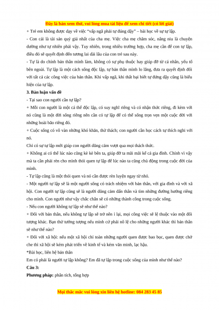 Em có phải là người tự lập không? Em đã tự lập trong cuộc sống của mình như thế nào? Câu 3: