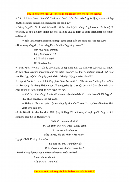 (Thanh Hải, Mùa xuân nho nhỏ, Ngữ văn 9, tập hai, NXB Giáo dục Việt Nam, 2017, tr 55- 56)