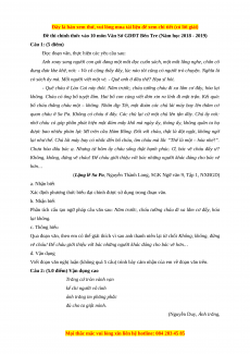 Đề thi chính thức vào 10 môn Văn Sở GDĐT Bến Tre (Năm học 2018 - 2019) Câu 1: (5 điểm)