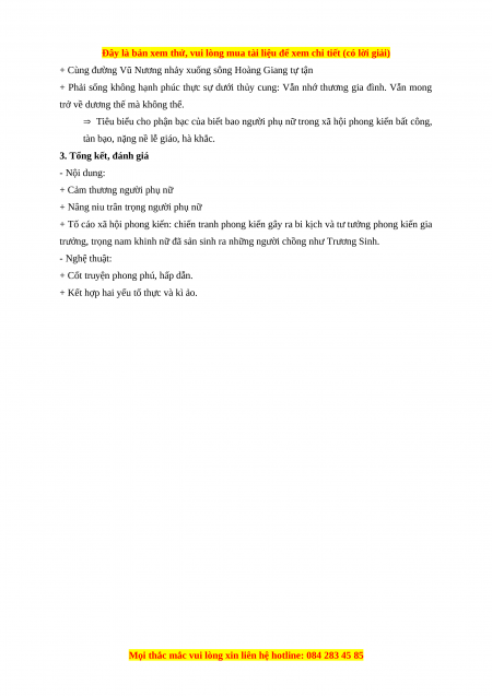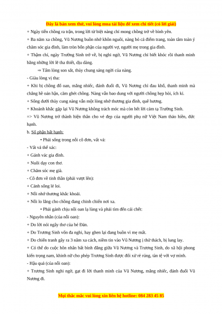 => Vũ Nương trở thành hiện thân cho vẻ đẹp của người phụ nữ Việt Nam thảo hiền, đức hạnh. b. Số phận bất hạnh: