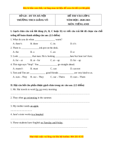 SỞ GD – ĐT TP. HÀ N I Ộ Đ Ề THI VÀO L P Ớ 6 TRƯ NG Ờ THCS GI NG Ả VÕ NĂM H C: Ọ 2020-2021 MÔN: TI NG Ế ANH I. G c