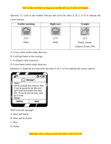Question 12. Read the text and circle the letter A, B, C or D to indicate the correct answer. Who wrote the message? A. Peter and Stefan B. Peter and his friend C. Peter D. Stefan M i