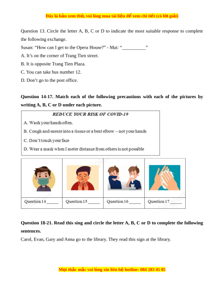 Question 18-21. Read this sing and circle the letter A, B, C or D to complete the following