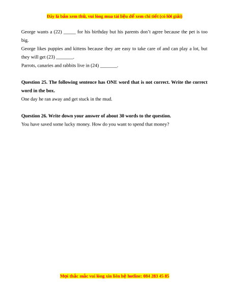 George wants a (22) _____ for his birthday but his parents don’t agree because the pet is too