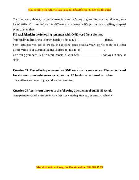 One thing you need to help other people is your (24) ______________, not your money or