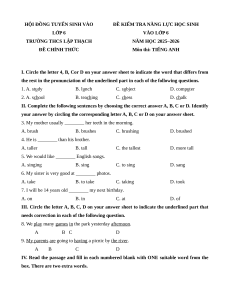 - Đề thi tuyển sinh chính thức vào lớp 6 môn Tiếng Anh trường Lập Thạch (Vĩnh Phúc) 2025.
