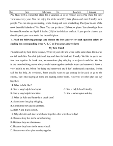 cinema, but I like staying at home and reading comic books. However, we often plan our day together. 14. What is Julie like?
