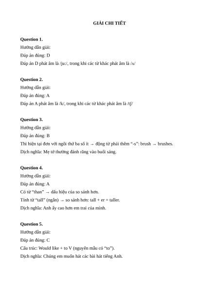 Dịch nghĩa: Anh ấy cao hơn em trai của mình. Question 5. Hướng dẫn giải: Đáp án đúng: C