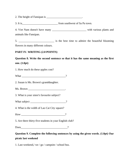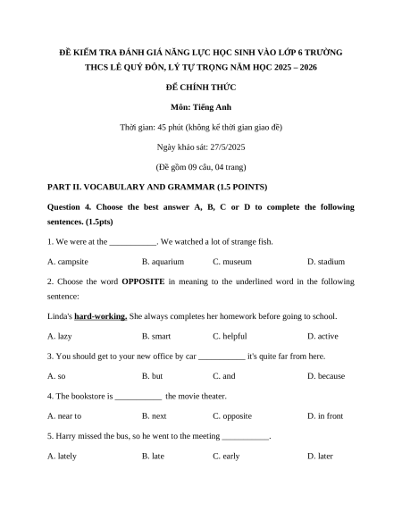 THCS LÊ QUÝ ĐÔN, LÝ TỰ TRỌNG NĂM HỌC 2025 – 2026 ĐỂ CHÍNH THỨC Môn: Tiếng Anh