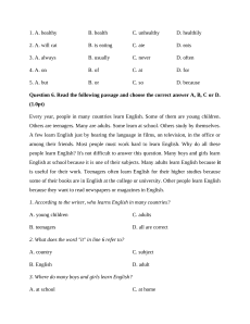 1. According to the writer, who learns English in many countries? A. young children C. adults B. teenagers D. all are correct