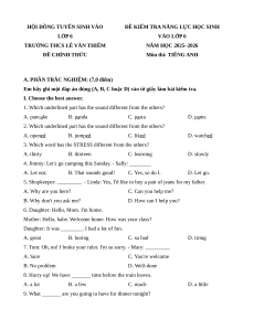 ĐỀ KIỂM TRA NĂNG LỰC HỌC SINH LỚP 6 VÀO LỚP 6