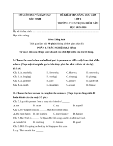 Học sinh trường: ................................................................................................................... Môn: Tiếng Anh